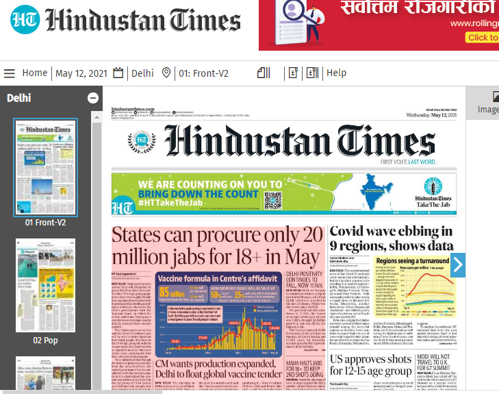 लोकतांत्रिक विकल्पका लागि खुला रहनु पर्छ र जे सुकै होस वा जो सुकैको सरकार बनोस उसलाई समर्थन गर्न हिन्दुस्तान टाइम्सले भारत सरकारलाई भनेको छ । उसले नयाँ सरकारलाई समर्थन गर्नु पछ र आफनो निकटतम छिमेकीलाई हरसम्भव सहयोग गर्न आग्रह गरेको छ । उसले महामारीको संकट ब्योहोरिरहेको बेला आफनो घरेलु आवस्यकता सँग सम्झौता नगरी जे जति सम्भव छ सहयोग गर्न आफनो सरकारसँग आग्रह गरेको छ । भारतका अन्य चर्चित अखबारले पनि नेपालको आन्तरिक मामिलामा अनावस्यक हस्तक्षेप नगर्न आफनो सरकारलाई आग्रह गरेका छन ।